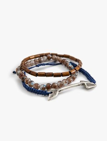 Erkek Bileklik Seti 3'lü Çok Renkli Boncuklu Metal Charm Detaylı