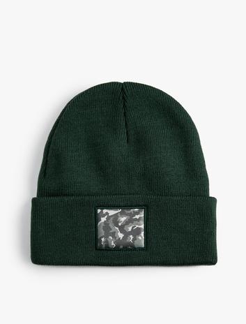 Erkek Örgü Bere Kamuflaj Detaylı Etiket İşlemeli Katlamalı