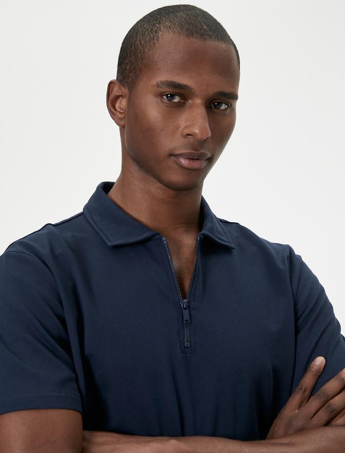 Hakim Yaka Tişört Yarım Fermuarlı Slim Fit Kısa Kollu