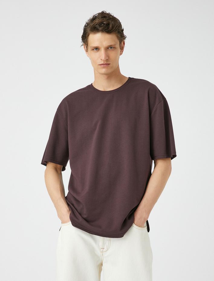 Basic Tişört Bisiklet Yaka Çift Kat Kol Detaylı Pamuklu