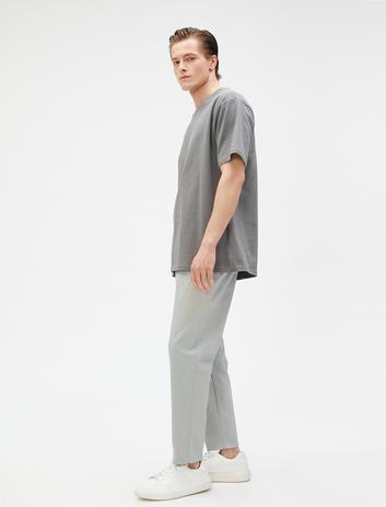 Beli Lastikli Pantolon Slim Fit Düğmeli Cepli Viskon Karışımlı