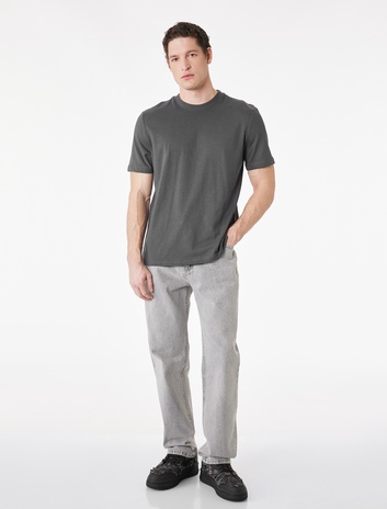 Regular Fit Kısa Kollu Pamuklu Bisiklet Yaka Tişört Sepete Ekle