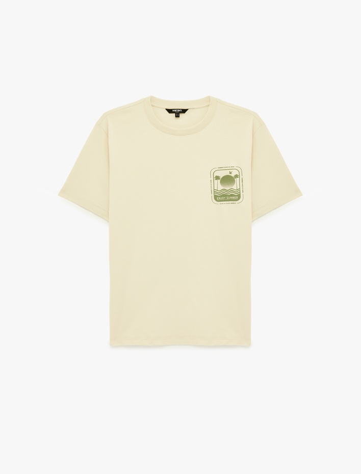 { "id": "8684846381879", "name": "Regular Fit Kısa Kollu Pamuklu Bisiklet Yaka Baskılı Tişört", "taxonomy":["MENSWEAR","CASUAL","MEN","JERSEY","TSHIRT SS"], "currency": "TRY", "unit_price": 499.99 , "unit_sale_price": 499.99 , "url": "https://www.koton.com/regular-fit-kisa-kollu-pamuklu-bisiklet-yaka-baskili-tisort-ekru-4097445-2/", "stock": 34, "color": "BEJ", "size": "L", "product_image_url": "https://ktnimg2.mncdn.com/products/2025/10/13/3141150/da4774e0-d3a9-4793-a622-c60d6b9f4833_size870x1142.jpg" }