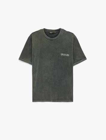 Regular Fit Kısa Kollu Bisiklet Yaka Pamuklu Yıkamalı Arkası Baskılı Tişört Sepete Ekle