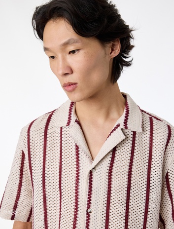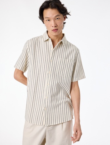 Regular Fit Kısa Kollu Ajurlu Devrik Yaka Çizgili Gömlek
