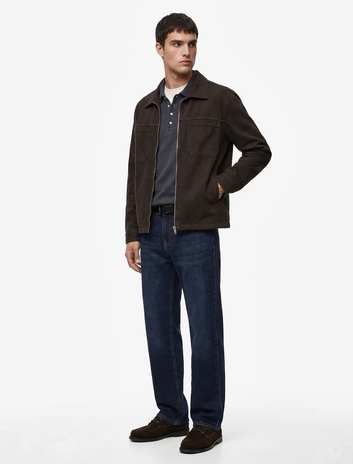 Gömlek Yaka Cepli Pamuklu Fermuarlı Jean Ceket