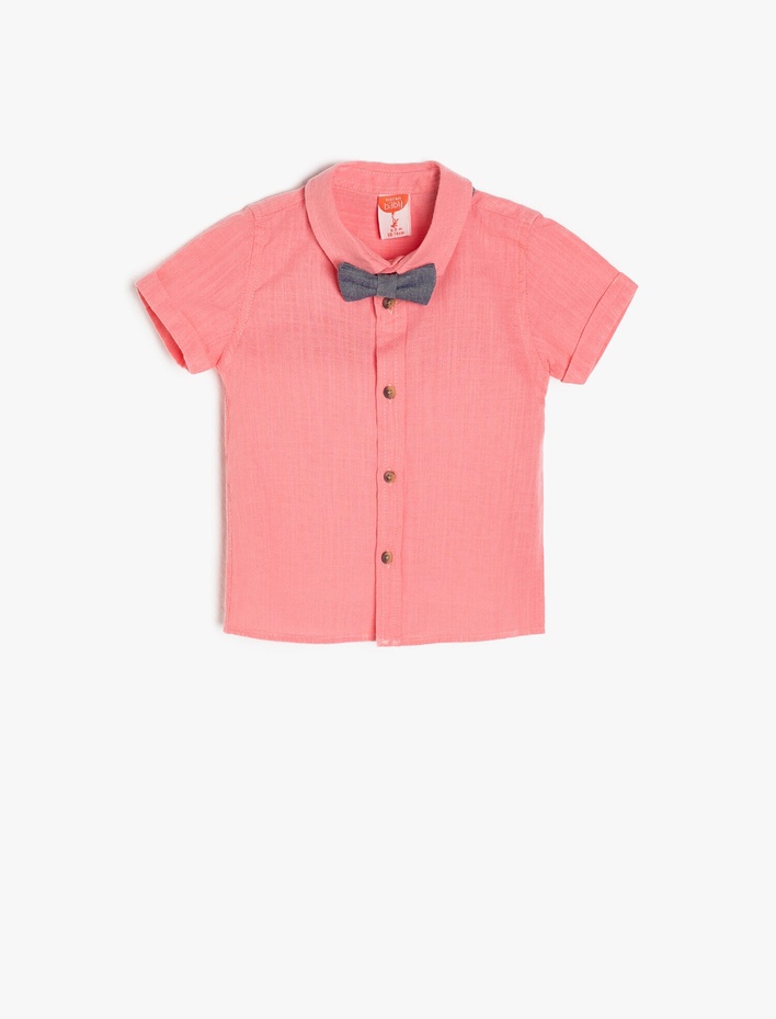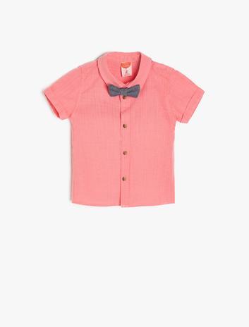 Erkek Bebek Klasik Yaka Kısa Kollu Pamuklu Desenli Cepli Papyonlu Gömlek