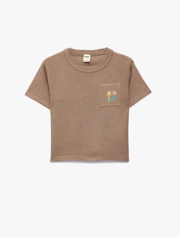 Kısa Kollu Bisiklet Yaka Viskon Cep Detaylı Nakışlı Triko Kazak Sepete Ekle