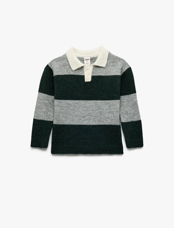 Erkek Bebek Uzun Kollu Çizgili Polo Yaka Triko Kazak