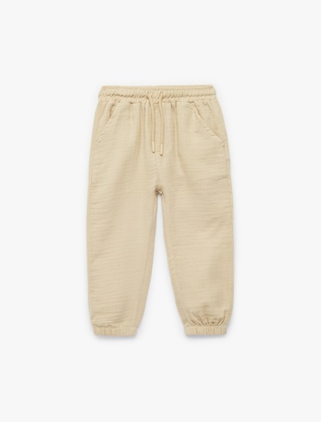 Hafif ve nefes alabilen kumaşıyla öne çıkan erkek bebek keten pantolon modelleri, bebeklerin cildine dost ve hafif yapılarıyla yaz aylarında rahat bir alternatif sunuyor. Şık ve zarif dokusuyla özel günlerde de tercih edilen keten pantolonlar, esnek bel detayları ve yumuşak dokusuyla gün boyu konfor sağlıyor. Koton’un geniş renk seçeneklerine sahip erkek bebek keten pantolon koleksiyonu, gömlek ve askılı tişörtlerle kombinlenerek hem klasik hem de modern kombinler oluşturmanızı sağlıyor. Bebeklere rahatlık sunan keten pantolonlar, şıklık ve rahatlığı bir araya getirerek ebeveynlerden tam not alıyor.