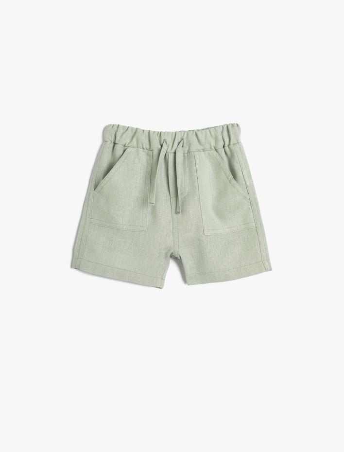 Erkek Bebek Keten Şort Beli Bağlamlı Cepli