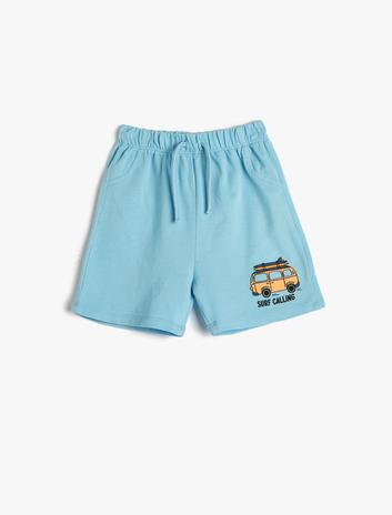 Erkek Bebek Şort Beli Bağlamalı Lastikli Baskılı Pamuklu