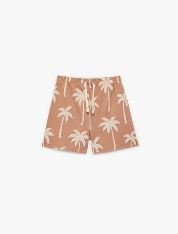 Palmiyeli Desenli Beli Lastikli Pamuklu Şort Sepete Ekle