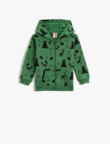 Fermuarlı Kapüşonlu Hırka Baskılı Pamuklu Sepete Ekle