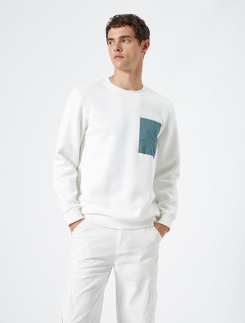 Bisiklet Yaka Sweatshirt Cep Detaylı Ribanalı Uzun Kollu Şardonlu