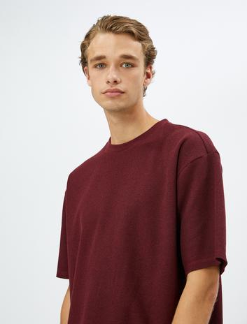 Basic Tişört Bisiklet Yaka Kısa Kollu Dokulu