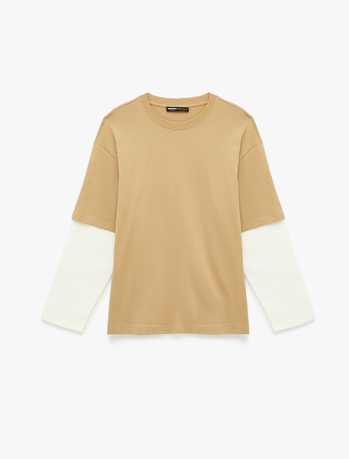 Bisiklet Yaka Rahat Kalıp Pamuklu Kumaş Detaylı Uzun Çıkma Kollu Tişört Sepete Ekle