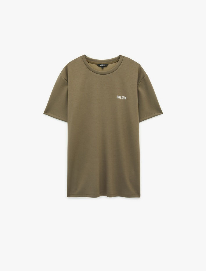 Regular Fit Dikiş Detaylı Kısa Kollu Pamuklu Bisiklet Yaka Baskılı Tişört Sepete Ekle