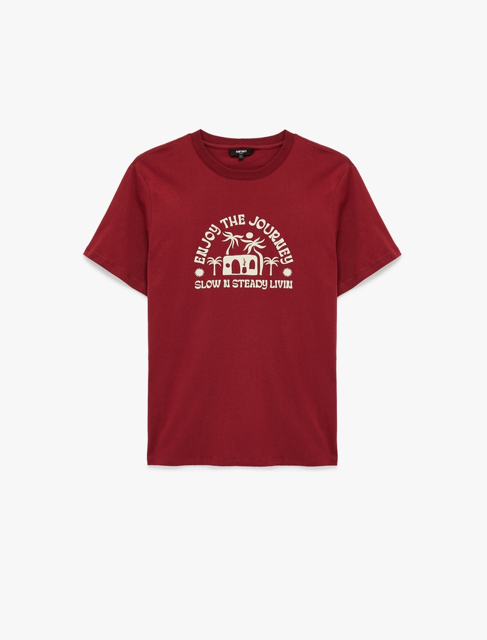 Bisiklet Yaka Regular Fit Pamuklu Kısa Kollu Slogan Baskılı Tişört Sepete Ekle