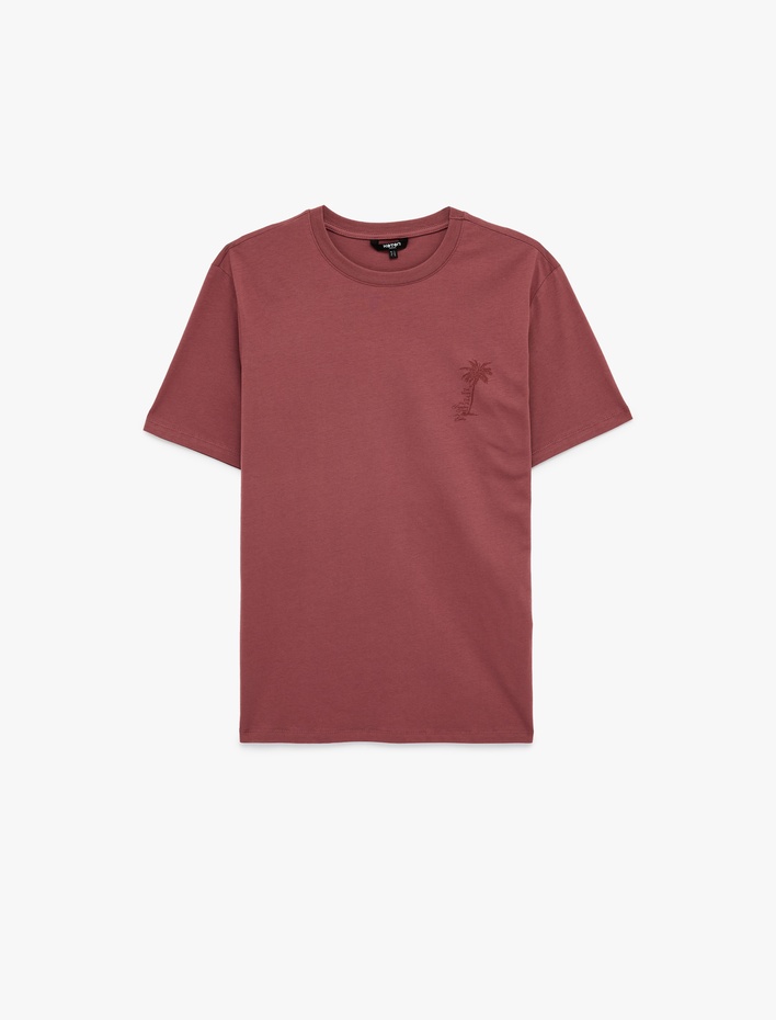 Bisiklet Yaka Pamuklu Regular Fit Kısa Kollu Yaprak Desenli Tişört Sepete Ekle