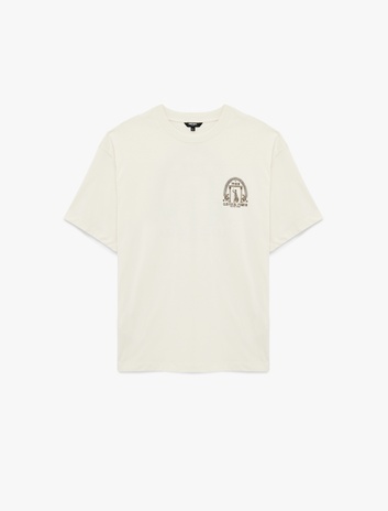 Rahat Kalıp Kısa Kollu Pamuklu Bisiklet Yaka Arkası Baskılı Tişört Sepete Ekle