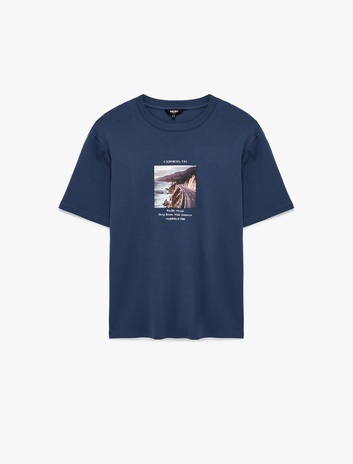 Kısa Kollu Bisiklet Yaka Regular Fit Pamuklu Baskılı Tişört Sepete Ekle