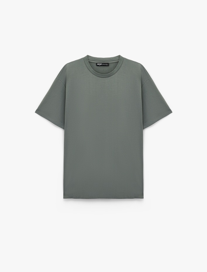 Regular Fit Bisiklet Yaka Viskon Karışımlı Kısa Kollu Tişört Sepete Ekle