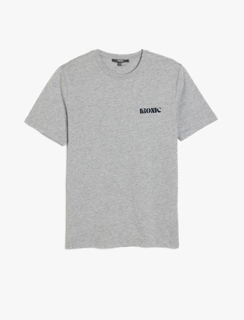 Slim Fit Kısa Kollu Pamuk Karışımlı Bisiklet Yaka Minimal Baskılı Tişört Sepete Ekle