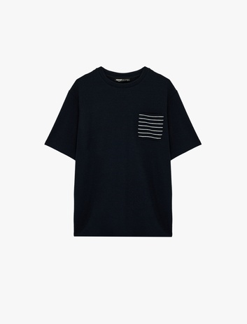 Regular Fit Çizgili Cep Detaylı Tok Kumaş Kısa Kollu Bisiklet Yaka Tişört