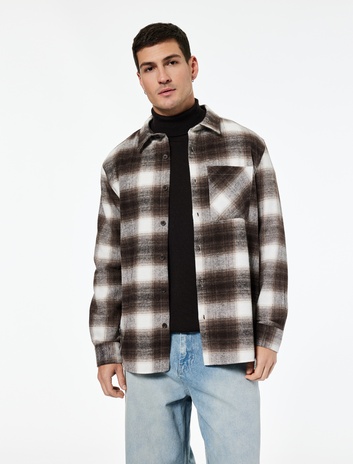Viskon Karışımlı Cep Detaylı Uzun Kollu Düğmeli Klasik Yaka Gömlek Ceket Sepete Ekle