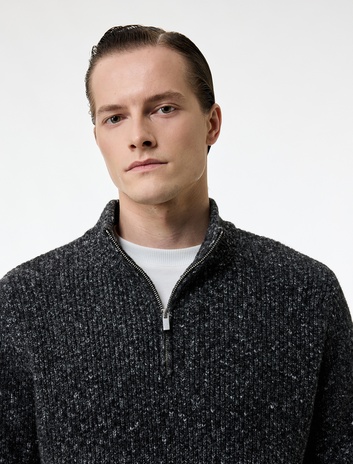 Uzun Kollu Dokulu Yarım Fermuarlı Yaka Triko Kazak Sepete Ekle
