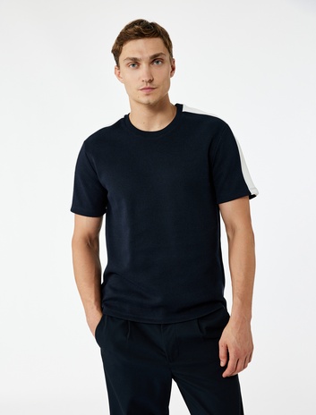 Regular Fit Kısa Kollu Renk Kontrastlı Bisiklet Yaka Tişört Sepete Ekle
