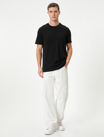 Cep Detaylı Kısa Kollu Bisiklet Yaka Regular Fit Pamuklu Basic Tişört