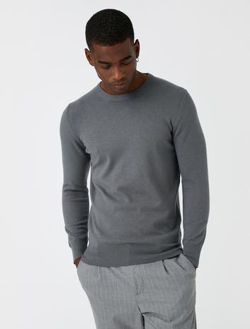 Basic Kazak Bisiklet Yaka Slim Fit Uzun Kollu Dokulu