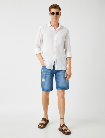 Fitilli Gömlek Düğmeli Klasik Yaka Cep Detaylı