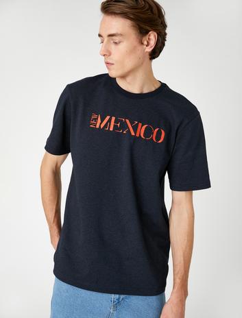 Dokuma Tişört Yazı İşlemeli Bisiklet Yaka Kısa Kollu