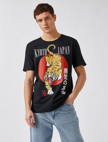 Kaplan Baskılı Tişört Bisiklet Yaka Sepete Ekle