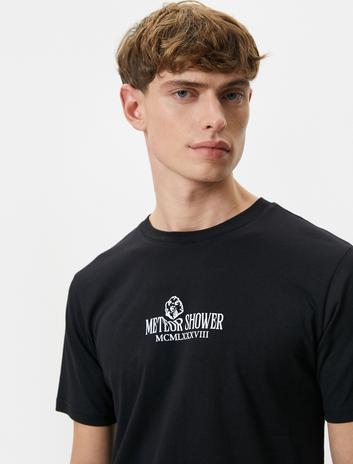 Slogan Baskılı Tişört Slim Fit Bisiklet Yaka Kısa Kollu Pamuklu