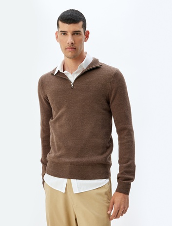 Kışlık Triko Kazak Yarım Fermuarlı Basic Uzun Kollu Sepete Ekle