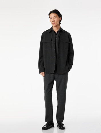 Regular Fit Uzun Kollu Cepli Klasik Yaka Gabardin Fermuarlı Gömlek