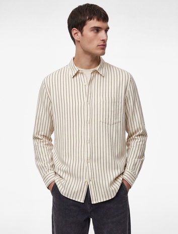 Klasik Yaka Regular Fit Uzun Kollu Pamuklu Çizgili Gömlek