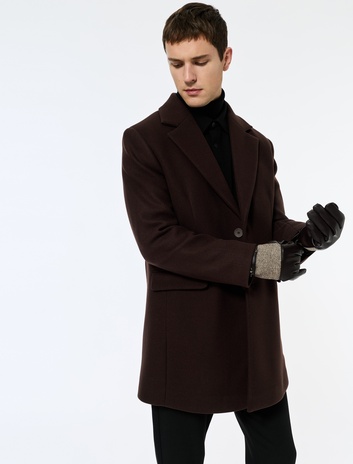 Uzun Kollu Kapaklı Cepli Düğmeli Mono Yaka Kaşe Kaban Sepete Ekle