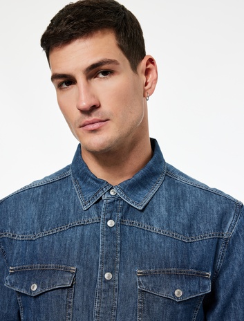 Kapaklı Cep Detaylı Regular Fit Klasik Yaka Uzun Kollu Denim Gömlek Ceket Sepete Ekle