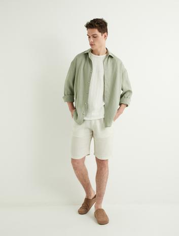 Bermuda Şort Chino Cepli Paça Detaylı Keten Karışımlı