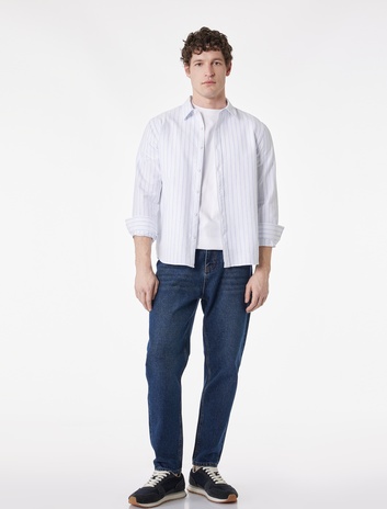 Regular Fit Uzun Kollu Pamuklu Klasik Yaka Çizgili Gömlek Sepete Ekle