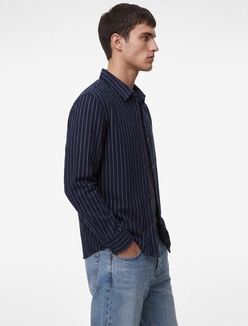 Keten Viskon Karışımlı Regular Fit Klasik Yaka Uzun Kollu Çizgili Gömlek