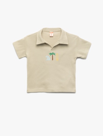 Polo Tişört Kısa Kollu Palmiye İşlemeli Düğme Detaylı Sepete Ekle
