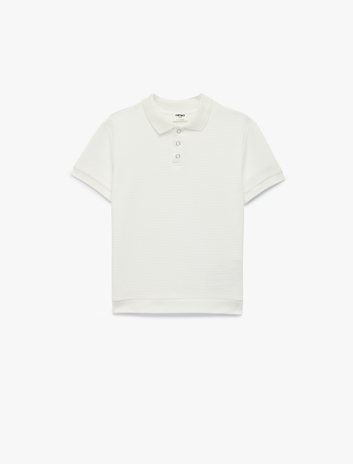Polo Yaka Tişört Dokulu Düğmeli Kısa Kollu Pamuklu Sepete Ekle