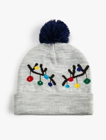 Erkek Çocuk Bere Karanlıkta Parlayan Ponpon Detaylı Desenli