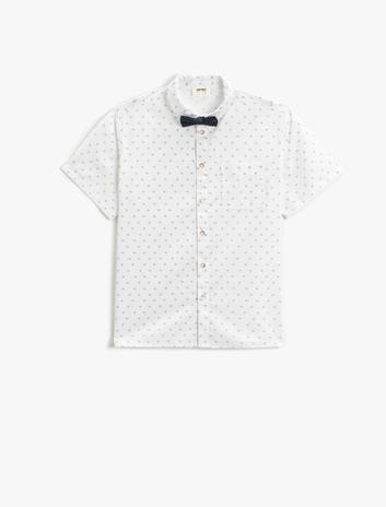 Kısa Kollu Gömlek Papyonlu Cepli Pamuklu Sepete Ekle